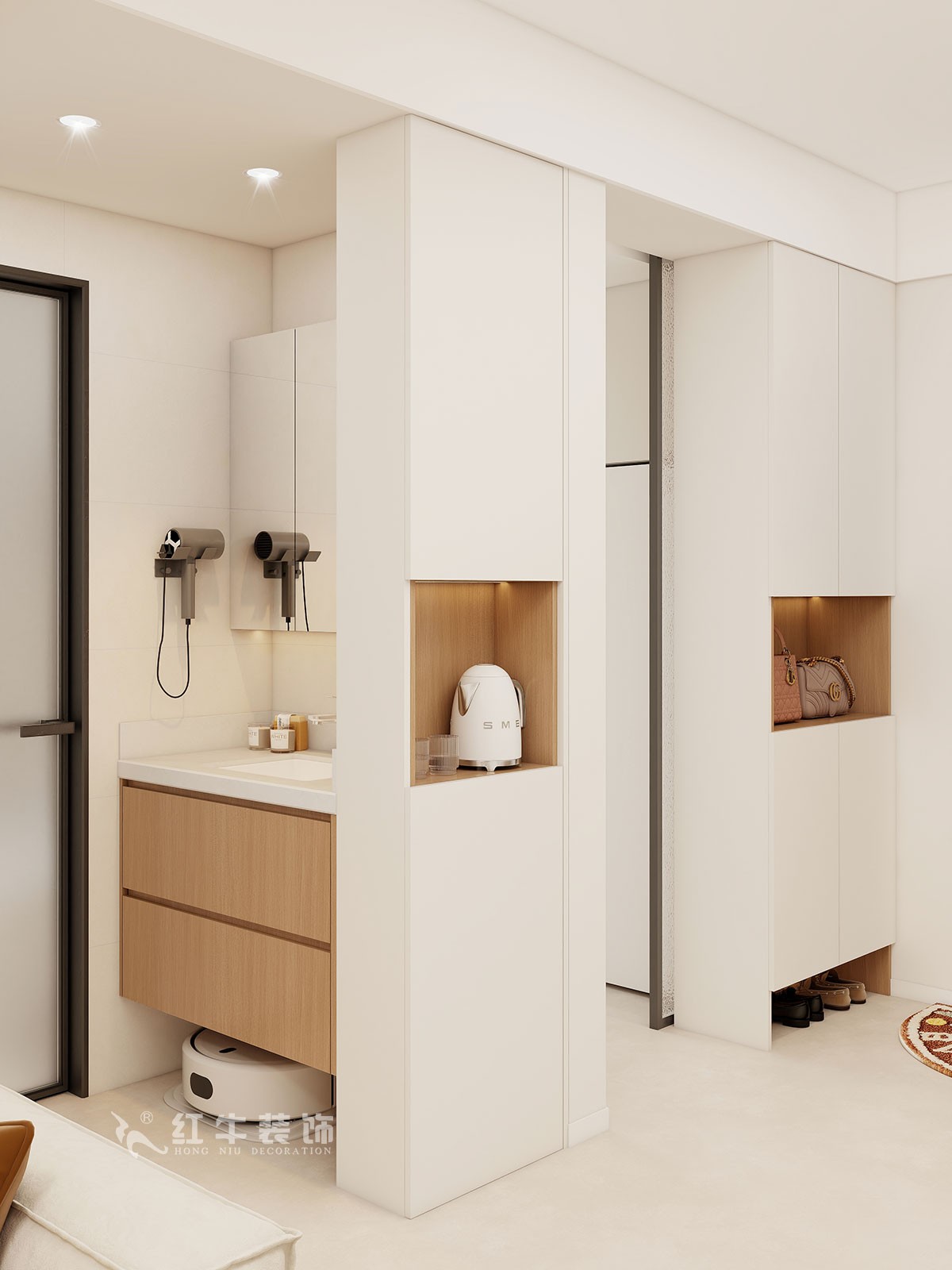 本案簡約風格,客戶需求增加儲物功能,在設計過程中方案墻體改動不多,可以滿足基本需求。擴大空間增加儲物功能,能夠滿足客戶所提需求。