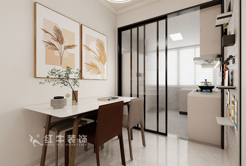 2、廚房可以利用北陽(yáng)臺(tái)擴(kuò)大,通過(guò)結(jié)構(gòu)改造可以增加餐廳的空間;